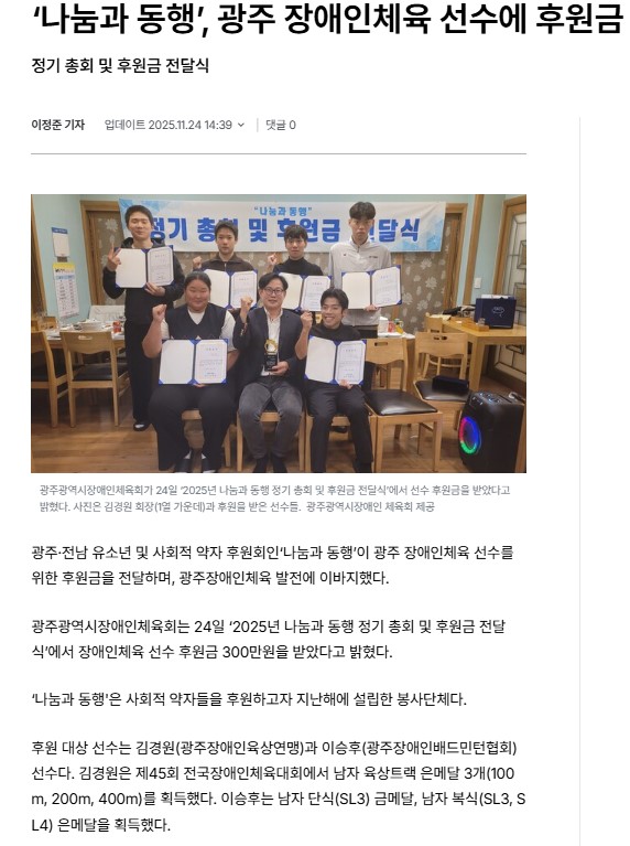 2025년 광주광역시 장애인체육상 수상자 선정결과 안내