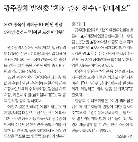 2025 광주광역시 장애인체육상 후보자 공모 안내