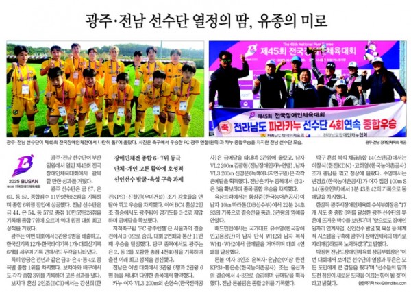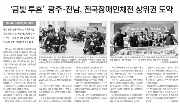 제45회 전국장애인체육대회 폐막-2025.11.6. 페이지 정보 작성자 관리자 댓글 0건 조회 29회 작성일25-11-06 08:39 관련링크 https://www.jnilbo.com/news/articleView.html?idxno=90000011865 19회 연결 http://www.kjdaily.com/1762334976666928007 6회 연결 본문 광주일보, 광주매일, 광남일보, 무등일보, 남도일보, 전남일보-2025.11.6. 댓글목록 목록