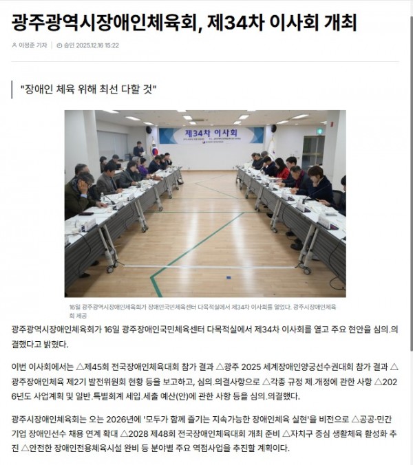 2025년 광주광역시 장애인체육상 수상자 선정결과 안내