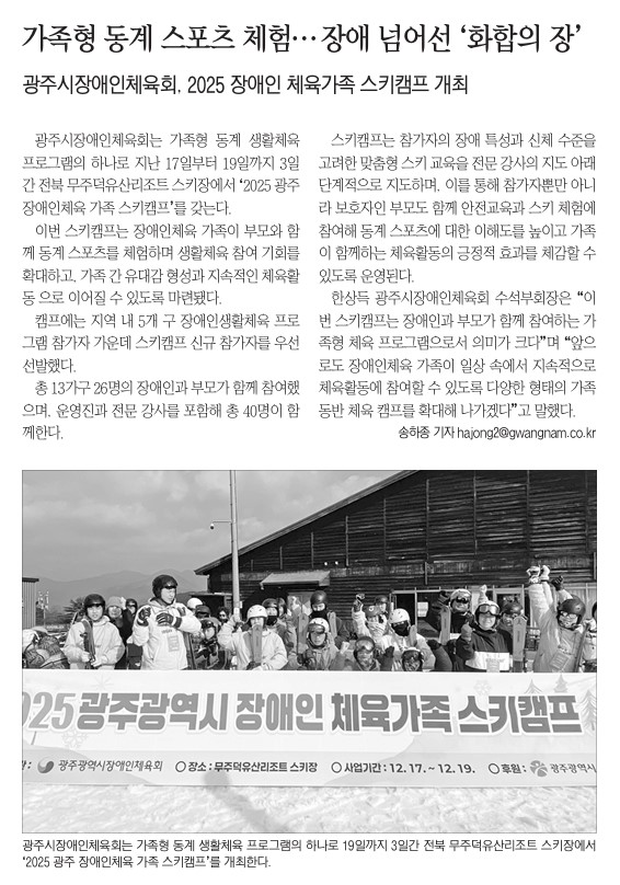 2025 광주광역시 장애인 체육가족 스키캠프 참가자 모집 공고