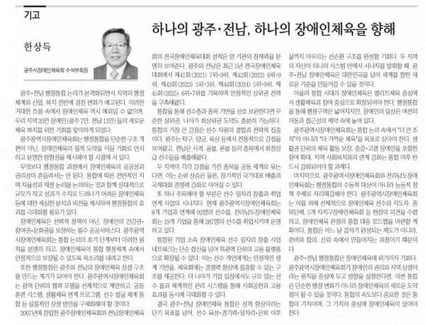 광남일보 기고-하나의 광주전남, 하나의 장애인체육을 향해 페이지 정보 작성자 관리자 댓글 0건 조회 39회 작성일26-01-23 09:02 본문 광남일보-2026.1.23. 댓글목록 목록