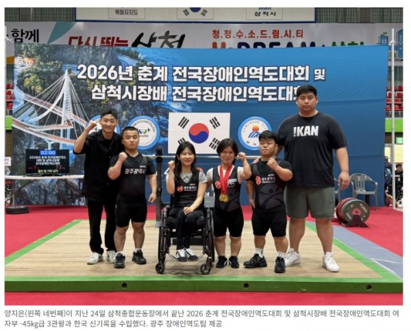 (260428) 광주테크노파크 양지은, 춘계전국장애인역도대회 한국신기록 및 3관왕 페이지 정보 작성자 관리자 댓글 0건 조회 6회 작성일26-04-28 16:53 관련링크 http://www.jndn.com/article.php?aid=1777280408431630010 0회 연결 본문 댓글목록 목록